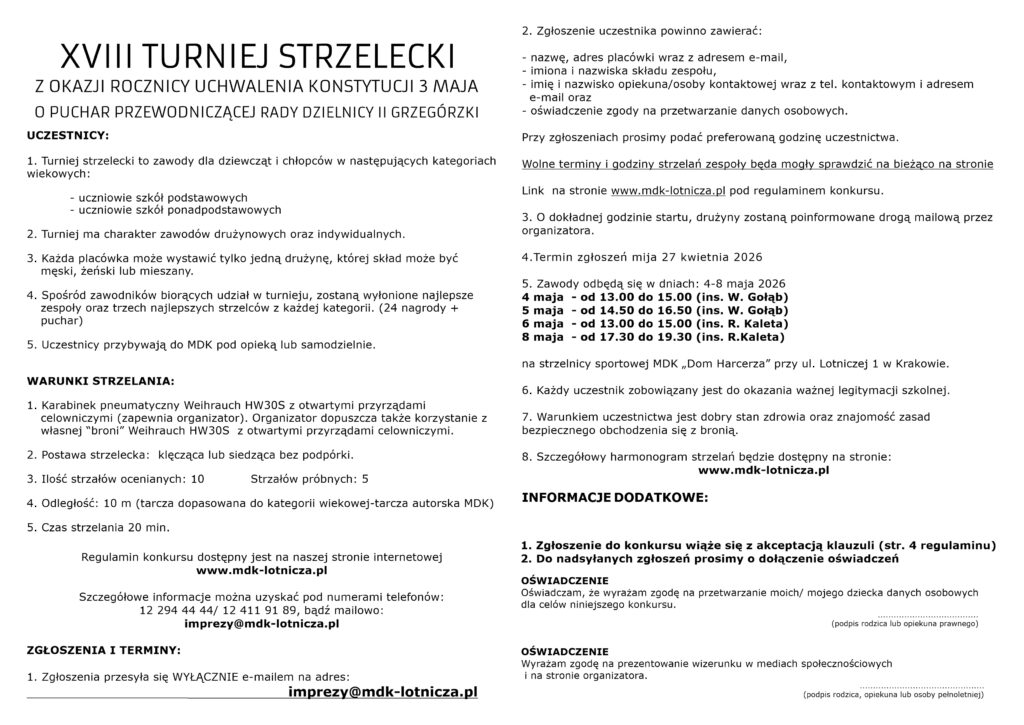 XVIII TURNIEJ STRZELECKI Z OKAZJI ROCZNICY UCHWALENIA KONSTYTUCJI 3 MAJA